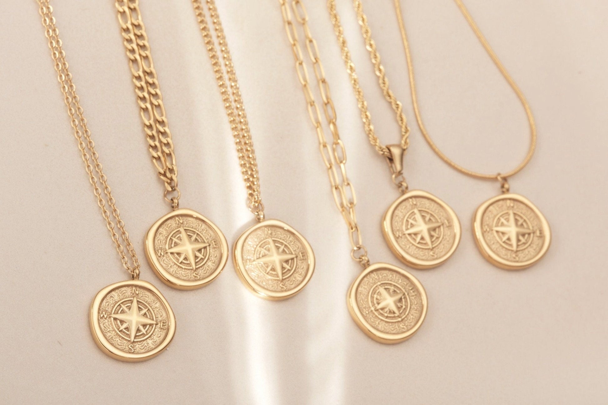 Graduation gift, compass necklace, travelers necklace, gold necklace, North star necklace, necklace gifts for women, coordinates necklace