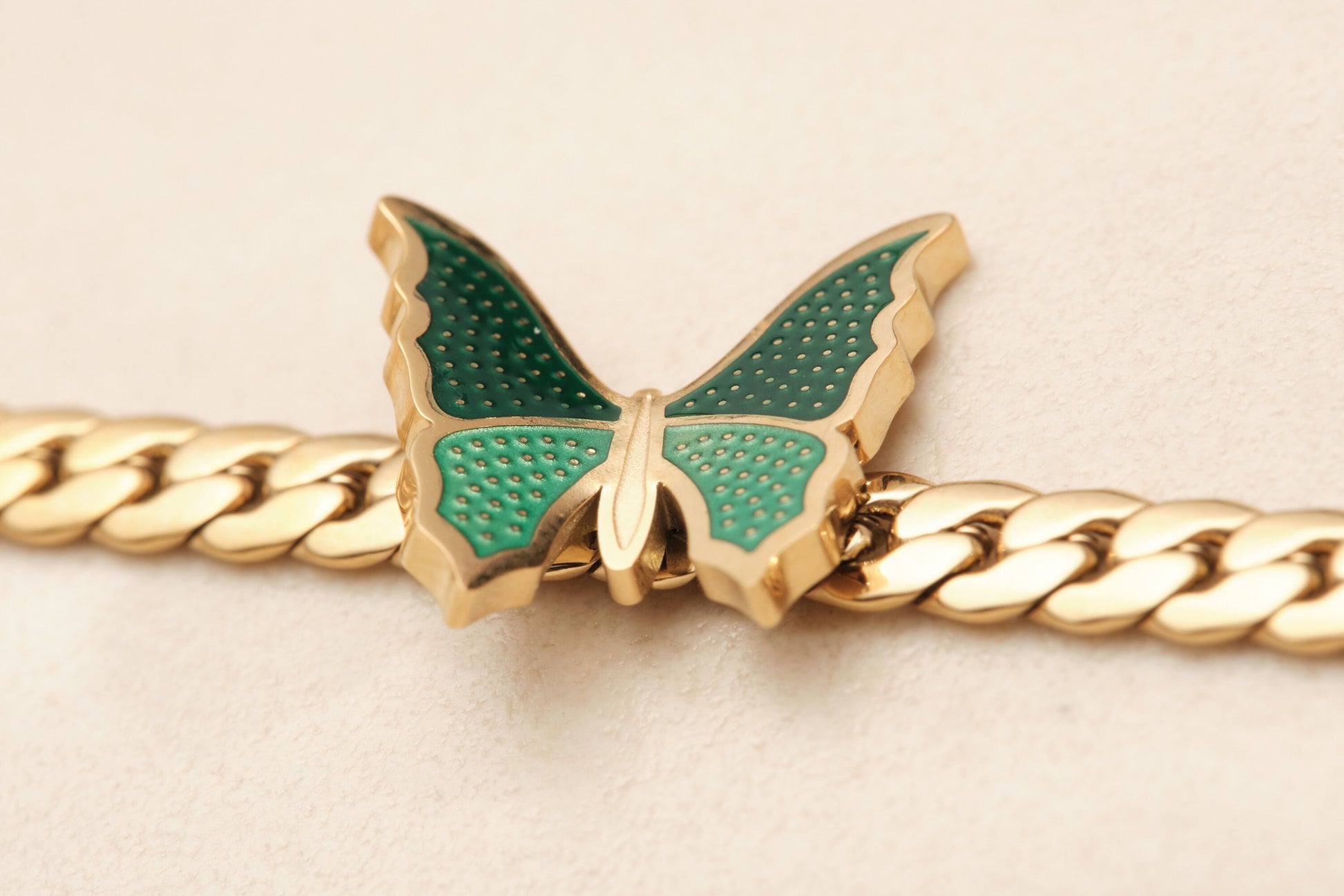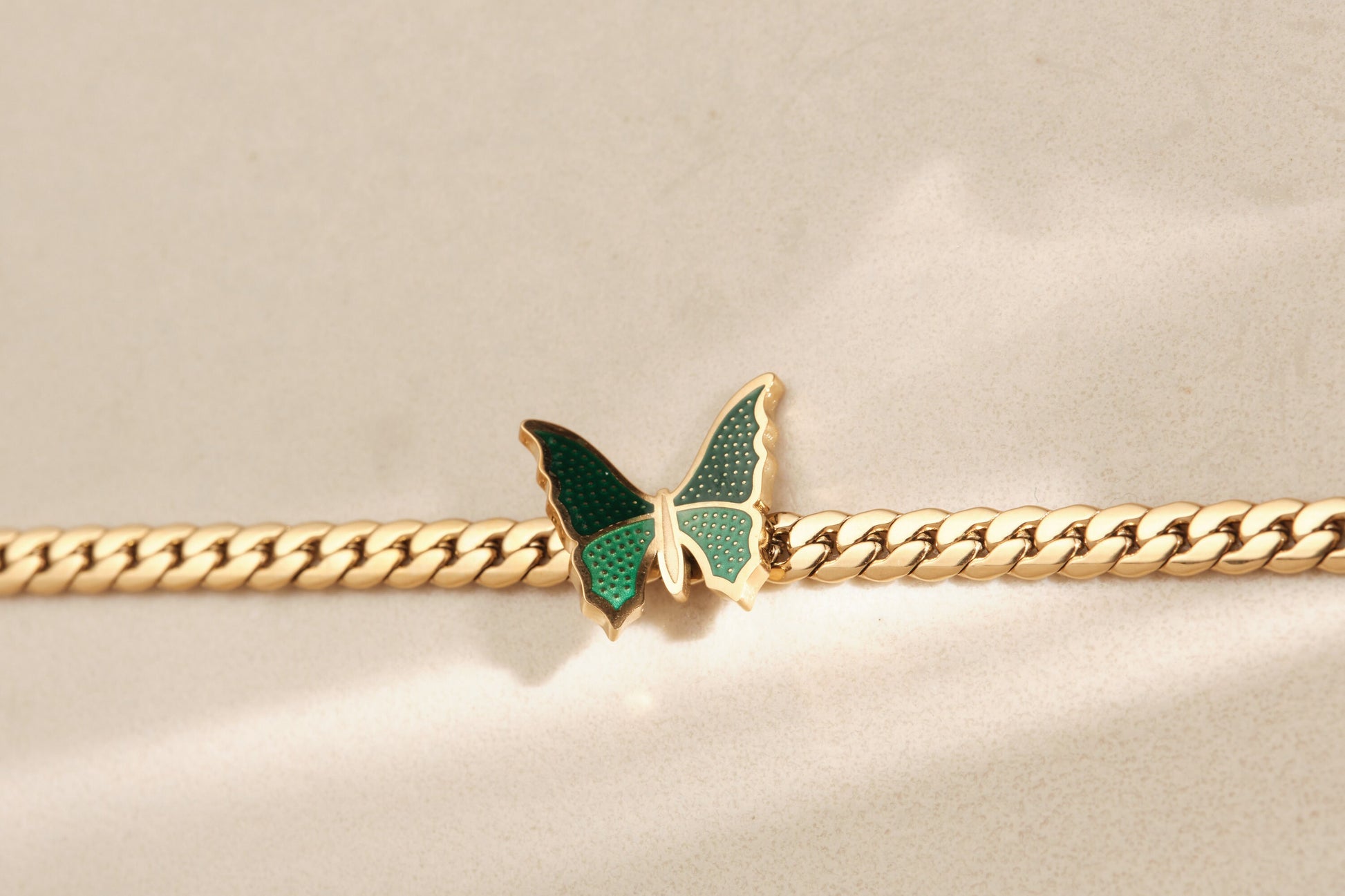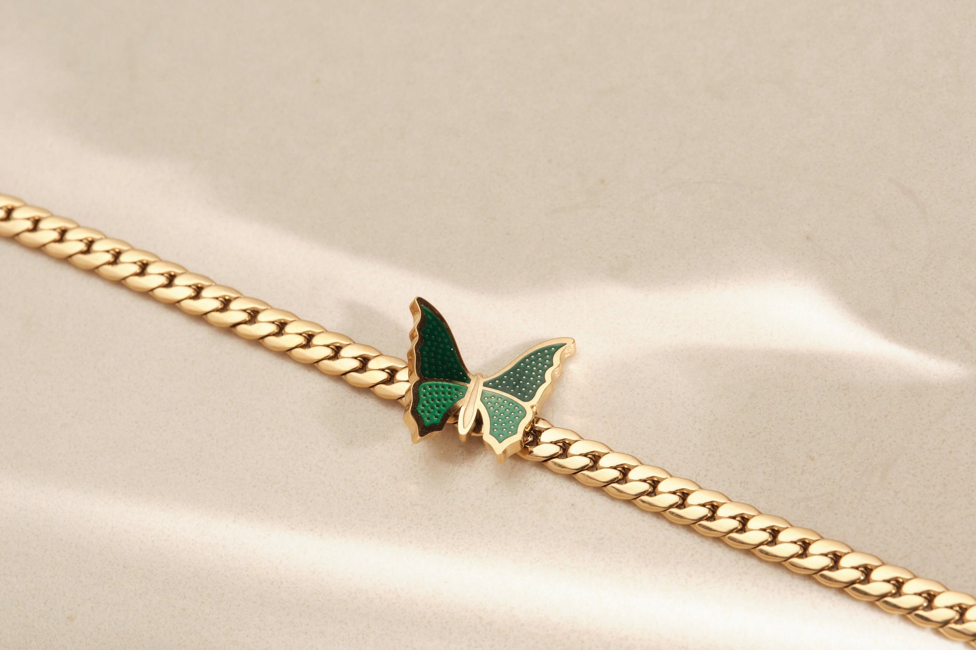 Green Butterfly Necklace, Gold Necklace, Gold Herringbone, Gold Snake Chain Choker, Gold Butterfly Choker, Gold Choker, WATERPROOF Choker