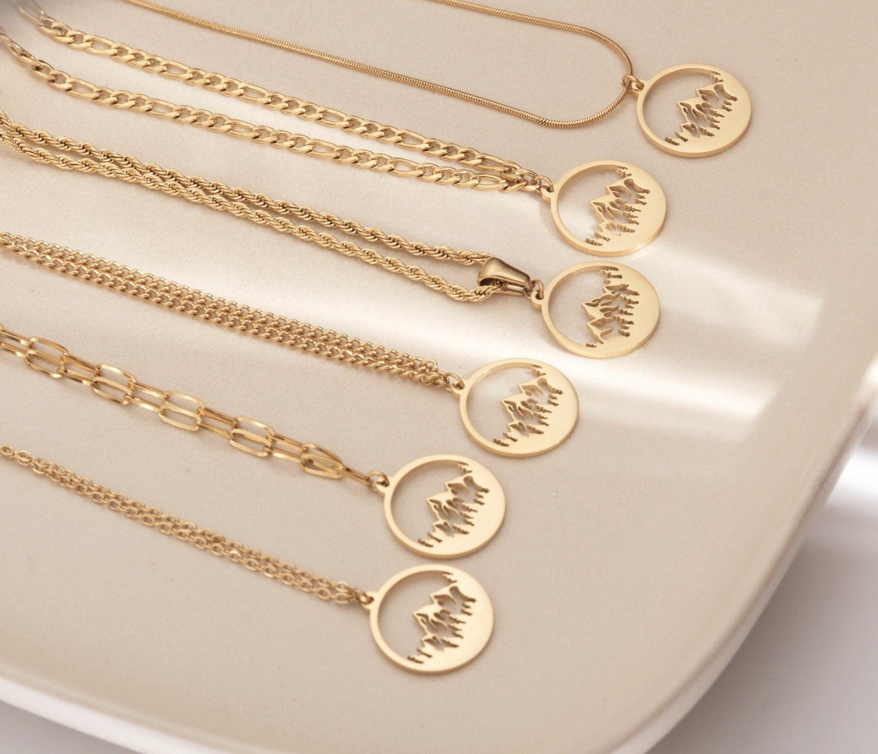 Mountain Necklace, Wanderlust Necklace, The Mountains Are Calling, Mountain Jewelry, Mountain Pendant, Mountain Charm, Mountain disc