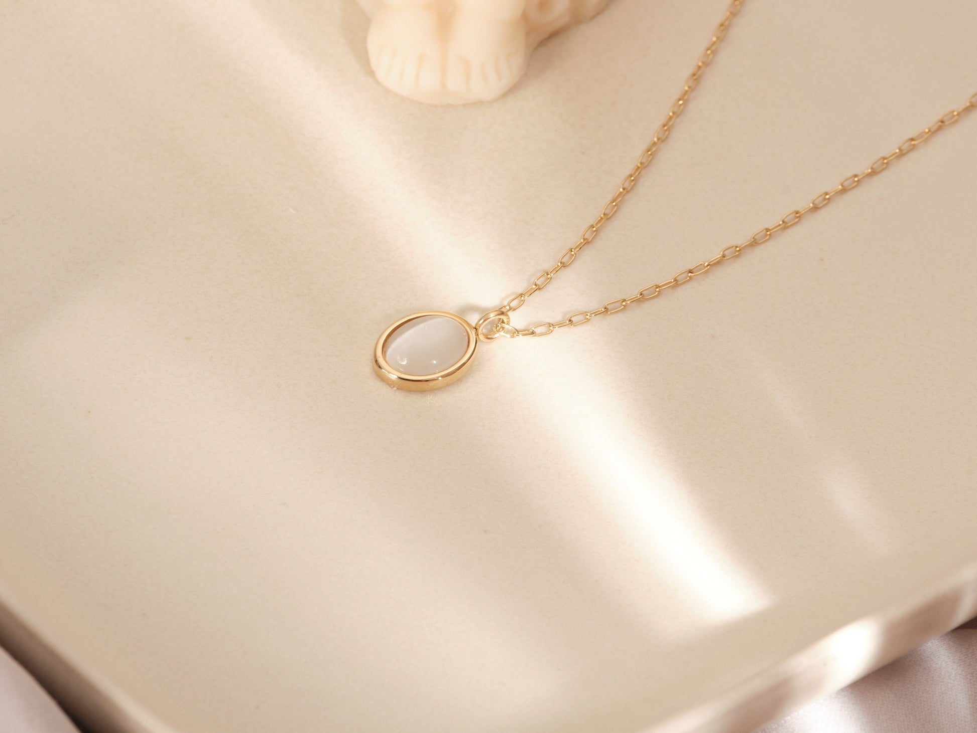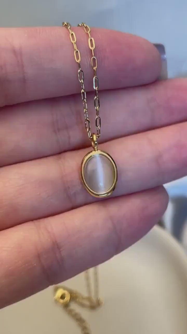 Oval Clear Quartz Gemstone Necklace, Natural White Quartz Necklace, Crystal Gem Necklace, Cateye Stone Necklace, Gold Necklace, Gem Necklace