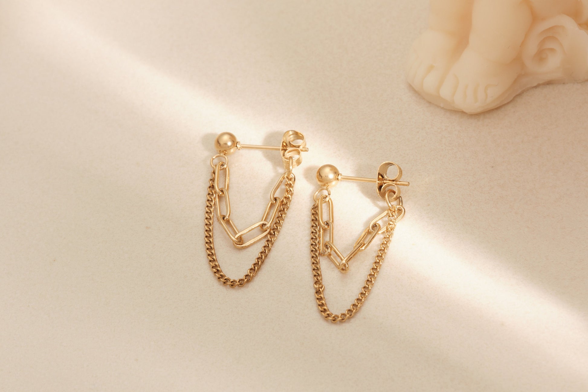 Simple Geometric Drop Chain Link Dangle Minimalist Modern Trending Streetwear Earring Accessory Non tarnish Earring Chain Earring WATERPROOF